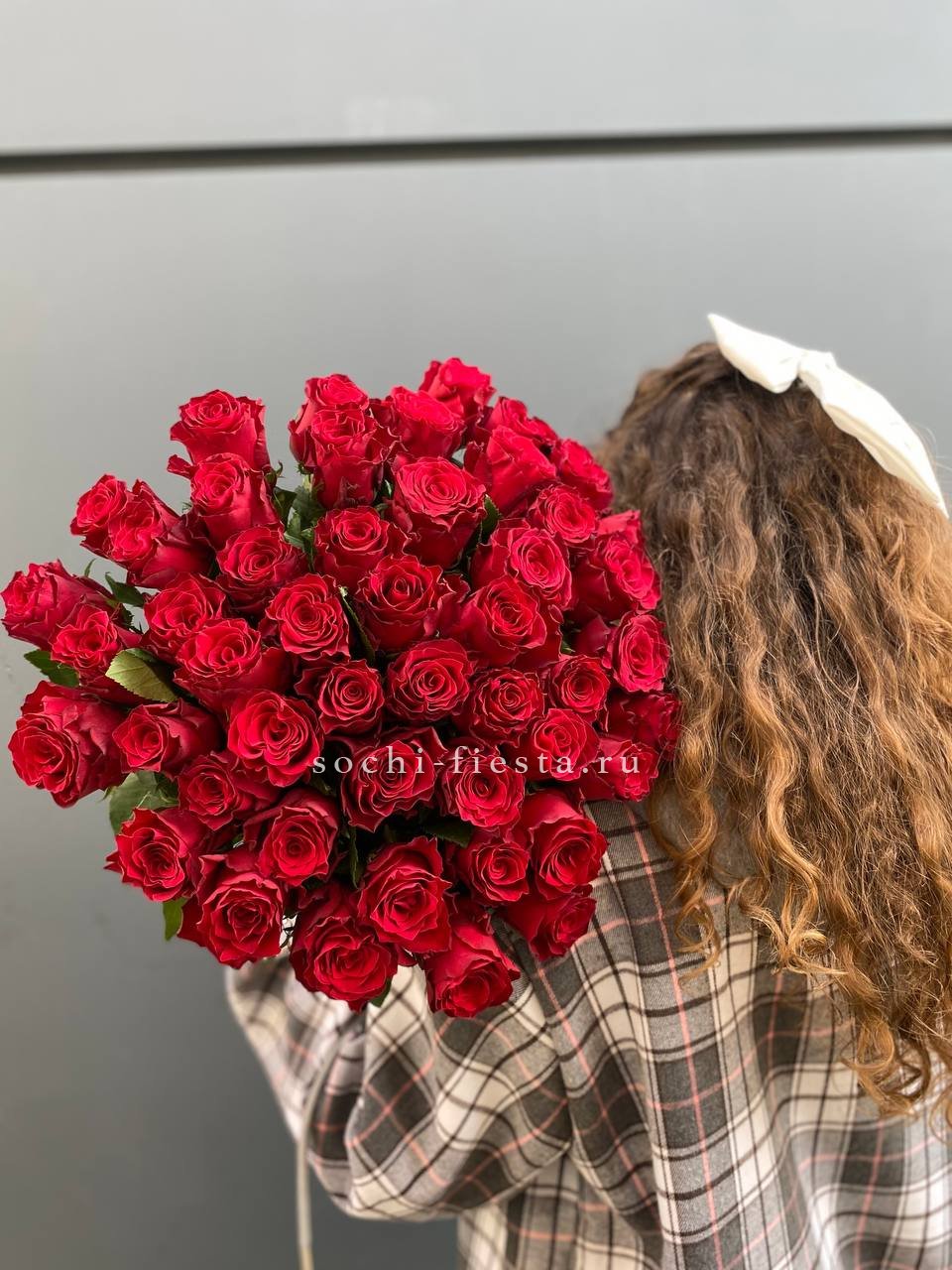 51 роза мадам ред в нежном оформлении