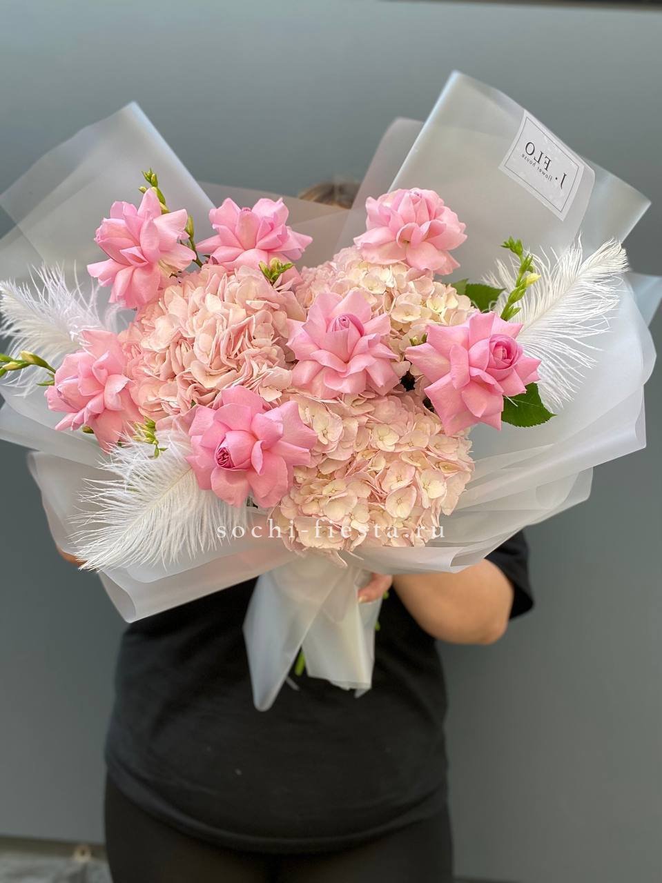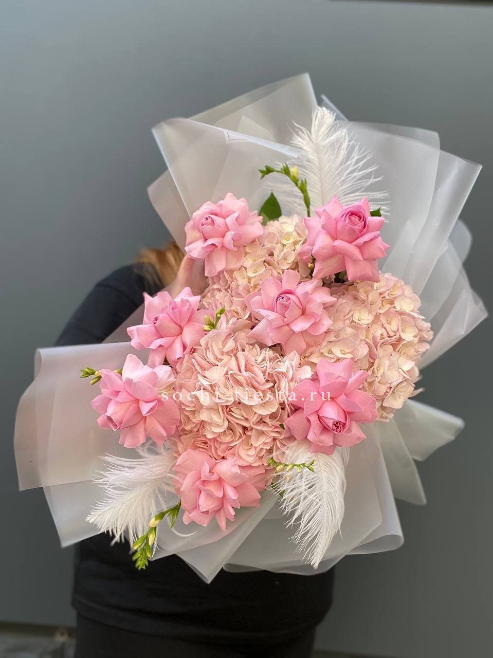 гербера, роза, антиринум(возможна замена), гортензия, эустома, упаковка.