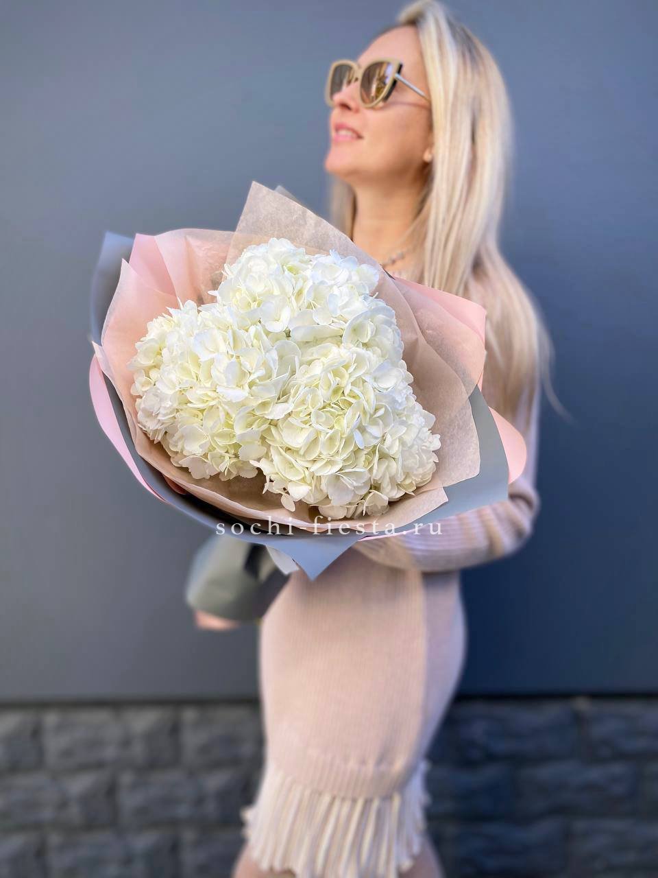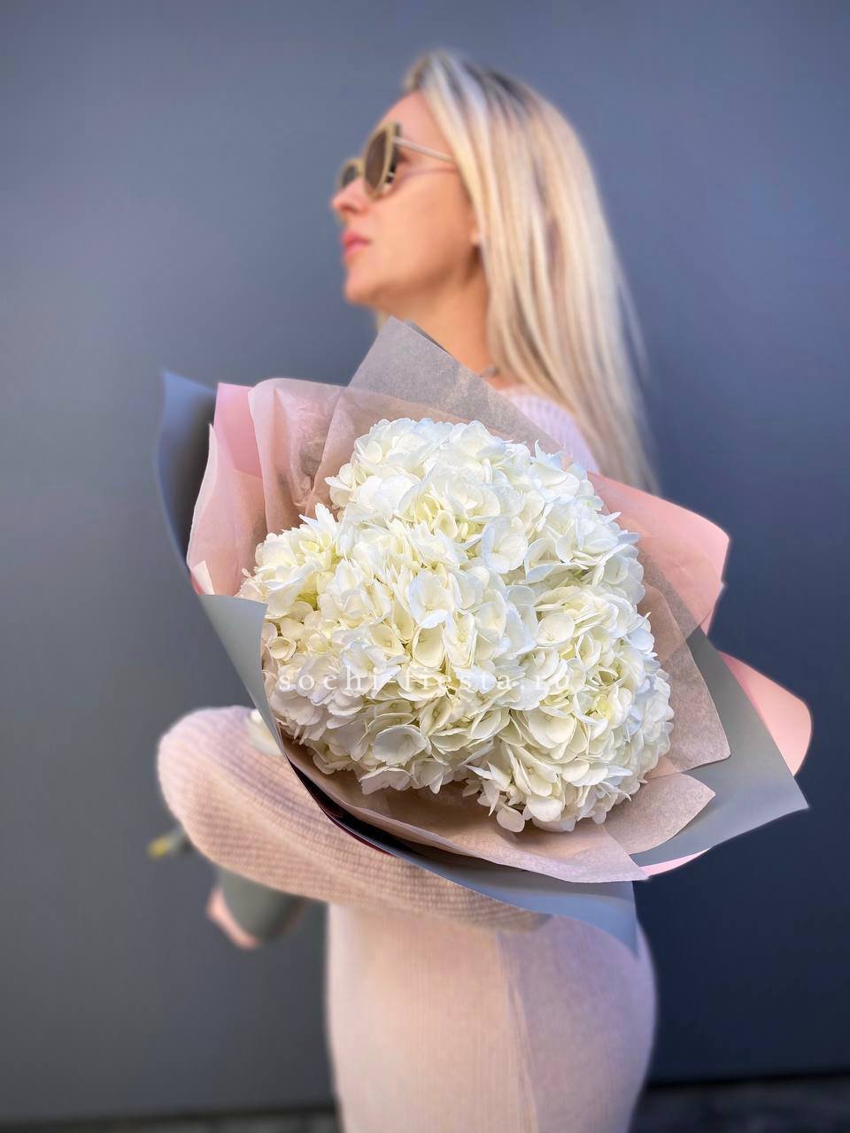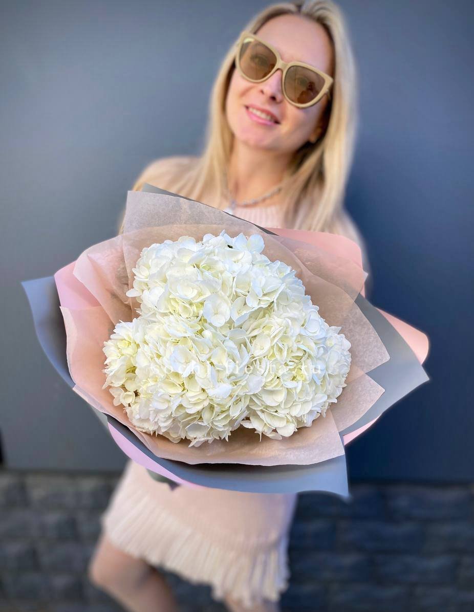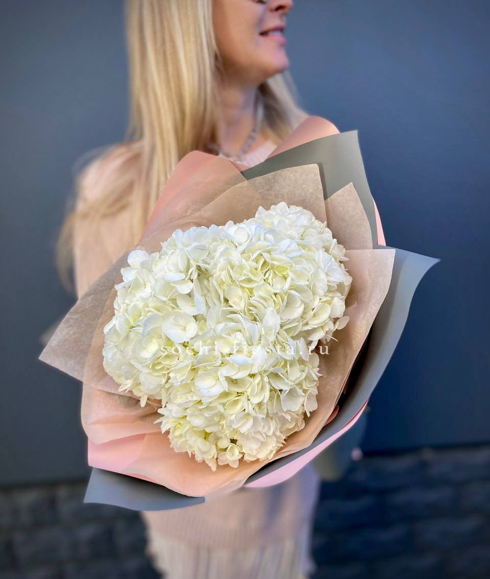 Для заказа товара "Букет из трёх белых гортензий" с доставкой в Новороссийске нажмите в корзину
