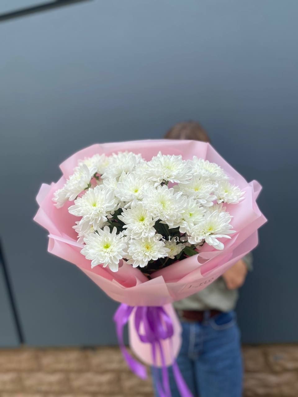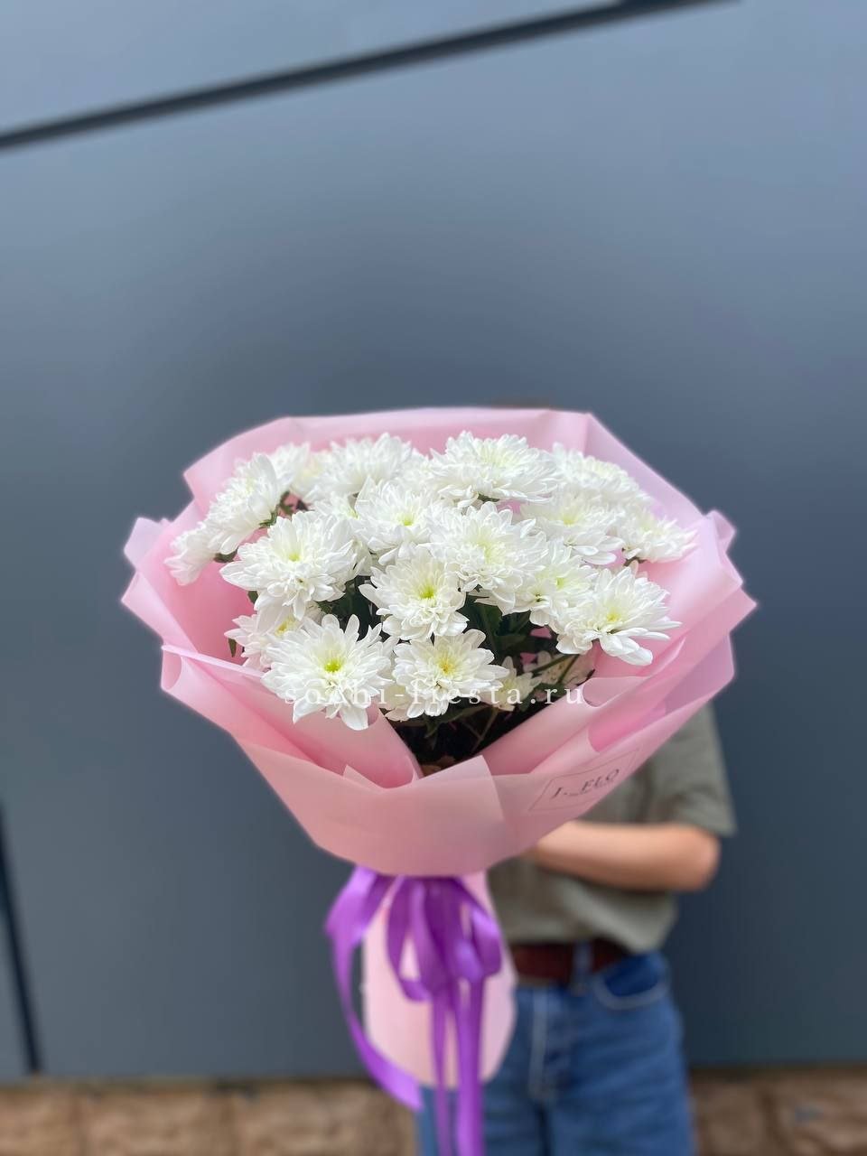 хризантема кустовая - 9 шт., лагурус, пленка,  лента.