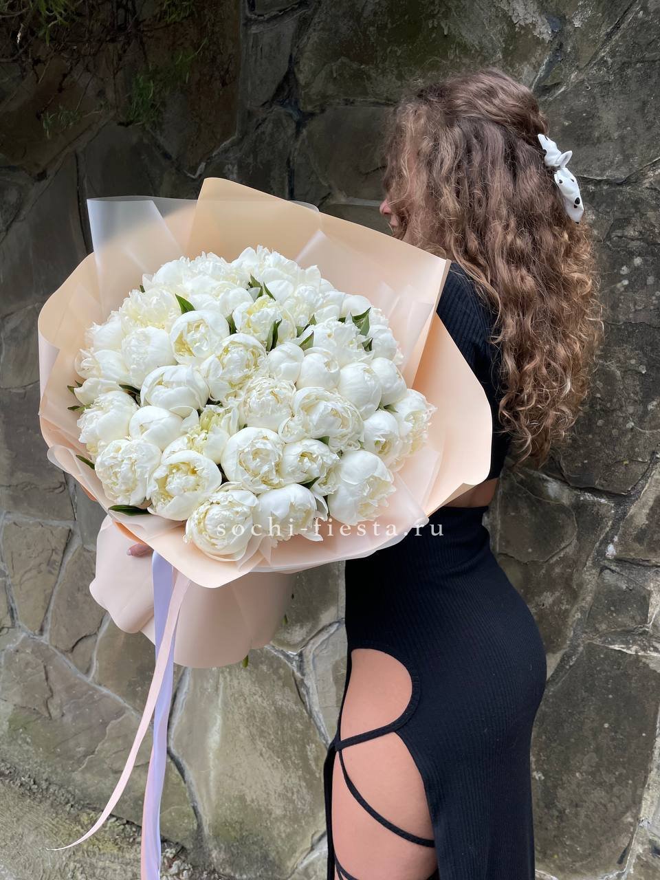 Белоснежные соцветия образуют чистую композицию с мягким ритмом. Тридцать пять головок раскрываются постепенно и сохраняют свежесть долгое время.