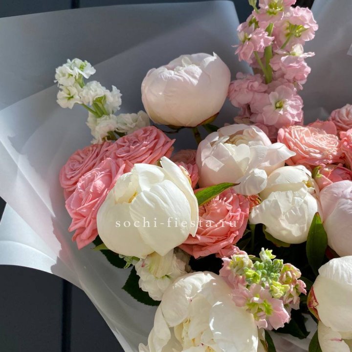 Материал авторских букетов в Новороссийске определяется доступными региональными поставками. David Austin розы через московские аукционы. Ранункулюс и анемоны в сезон. Пионы в мае-июне. Нигелла, дельфиниум, клематис в летний период. Осенью — анемоны, физалис, амаранто. Зимой — орхидеи, антуриум. Флорист строит авторский букет из редкого и сезонного материала, доступного в регионе.