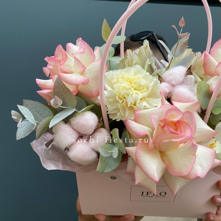 Размер выбирается по повод. Коллеге в Новороссийске — M или L. Юбилей родителей — XL. Выписка из роддома — L в пудровой палитре. Корпоративный юбилей — XXL. Романтический подарок — M или L в яркой палитре.