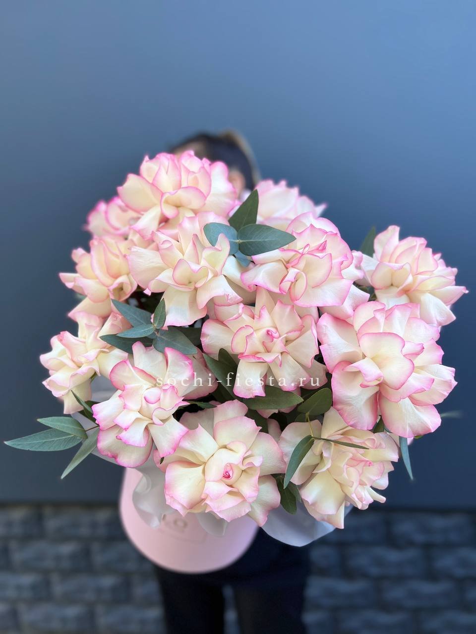 гортензии, пионовидные кустовый розы, декоративная зелень, бокс D25.