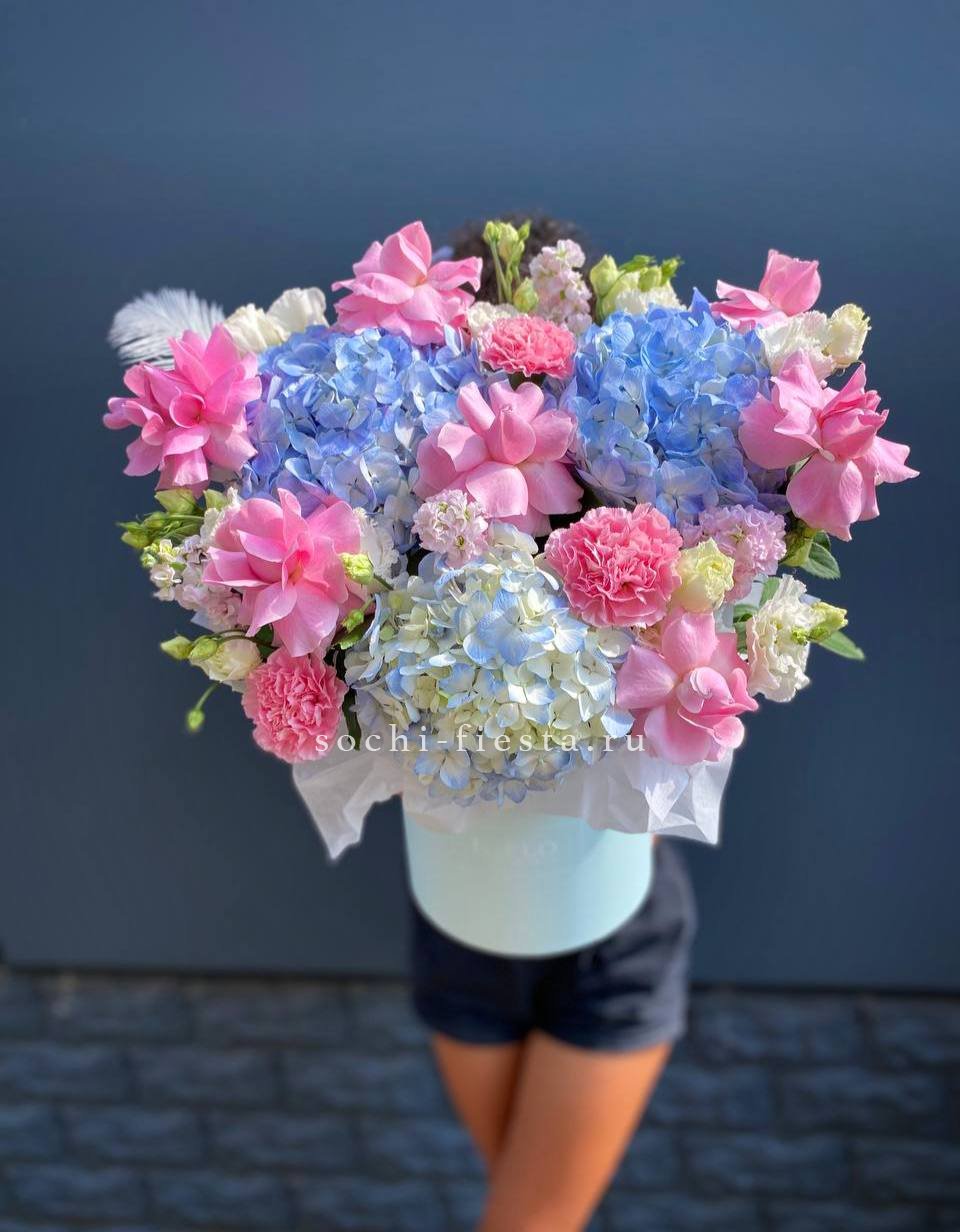 Композиция в светлом цилиндре выдержана в единой нежно-розовой палитре. Оттенки перетекают один в другой, создавая спокойное и цельное визуальное впечатление.