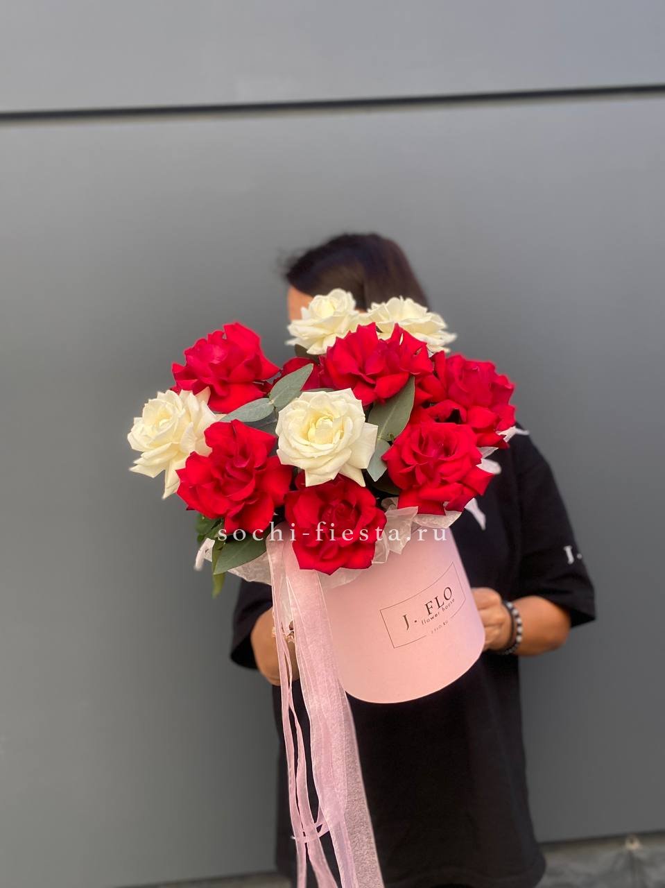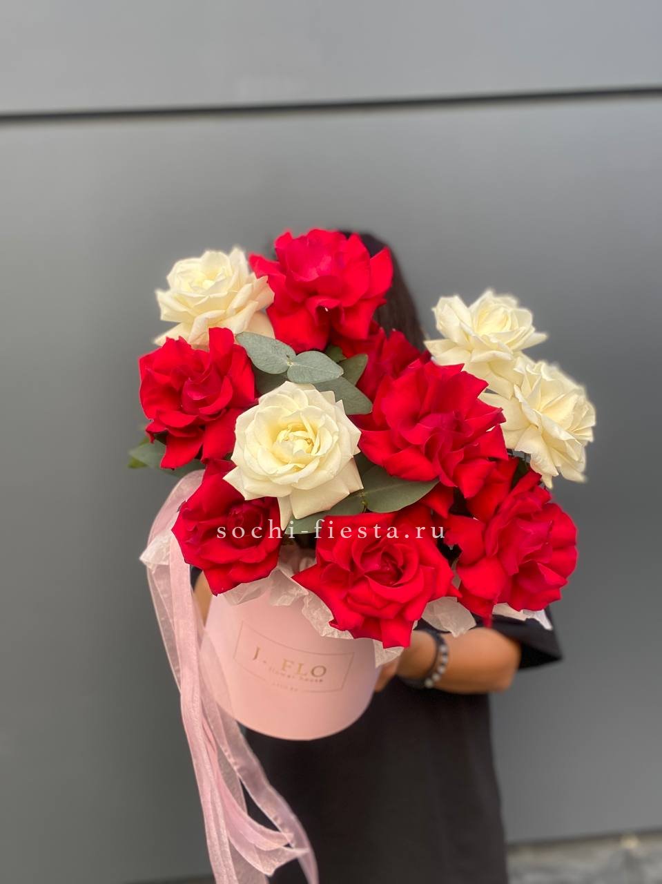 гортензия, пионовидные розы, эустома, эвкалипт, бокс 16.