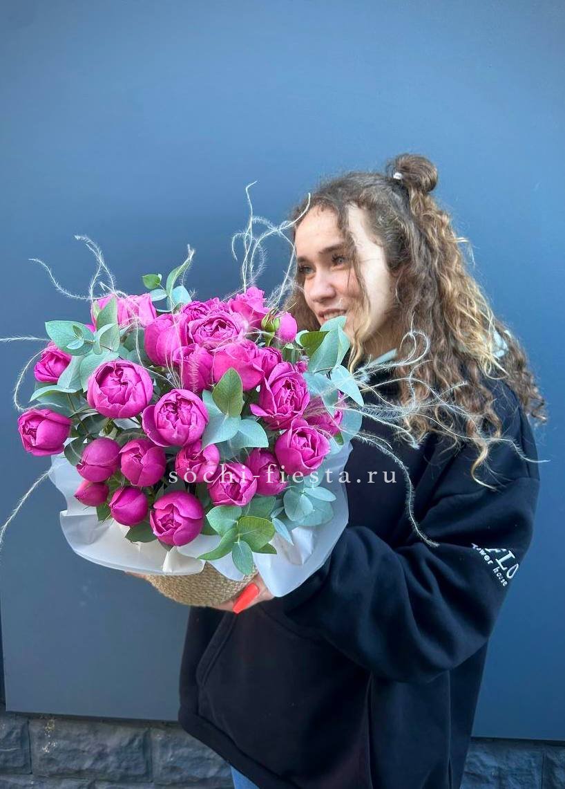 Для заказа товара "Пионовидные розы в джутовом кашпо " с доставкой в Новороссийске нажмите в корзину