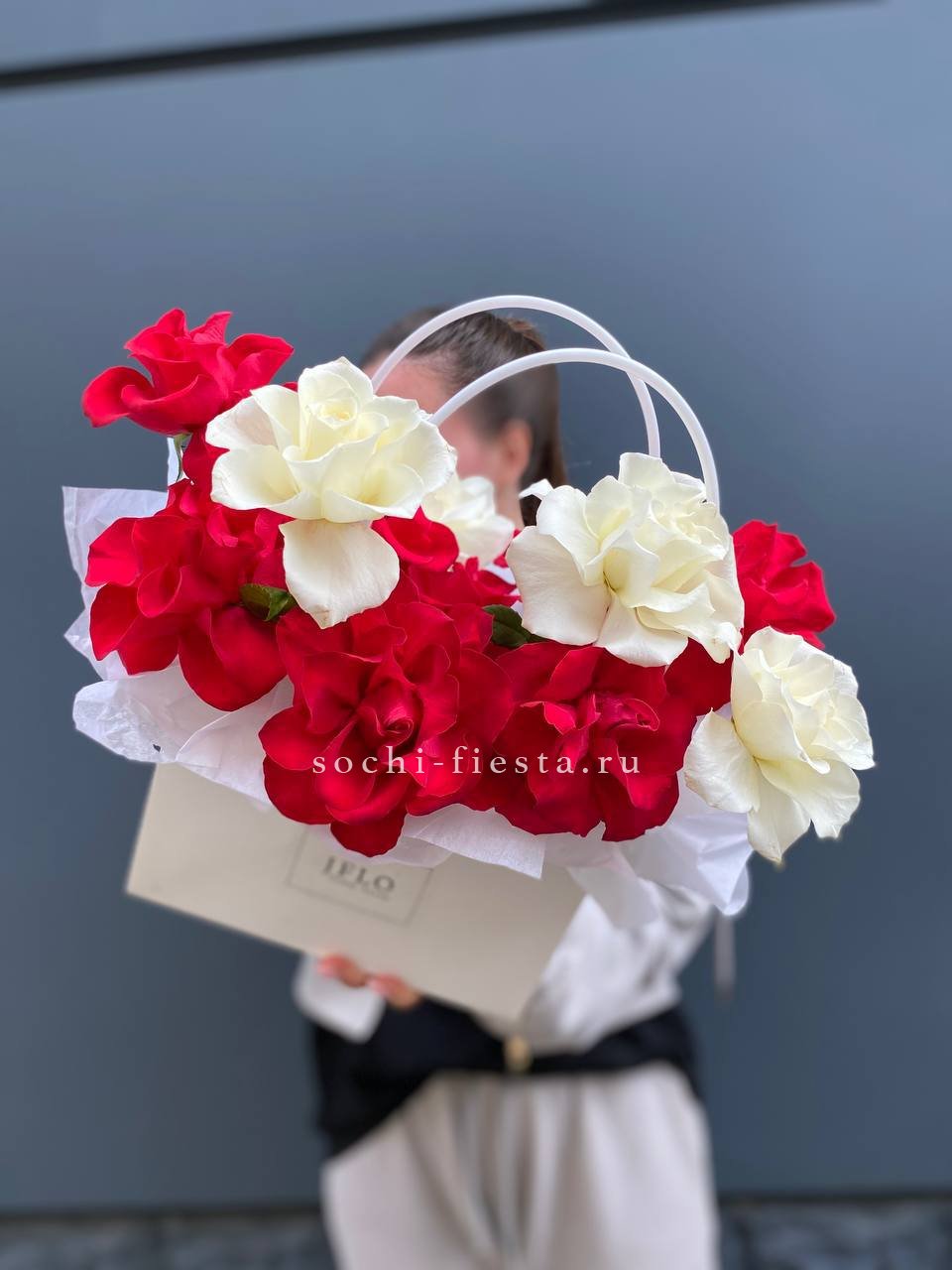 Для заказа товара "Сумочка красных и белых роз" с доставкой в Новороссийске нажмите в корзину