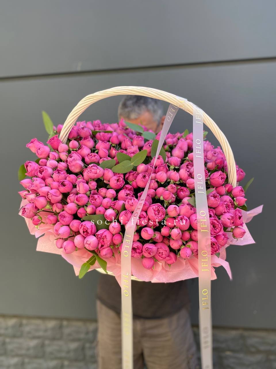 гортензии, лилии, хризантемы, пионы, лимониум, маттиола, корзина.