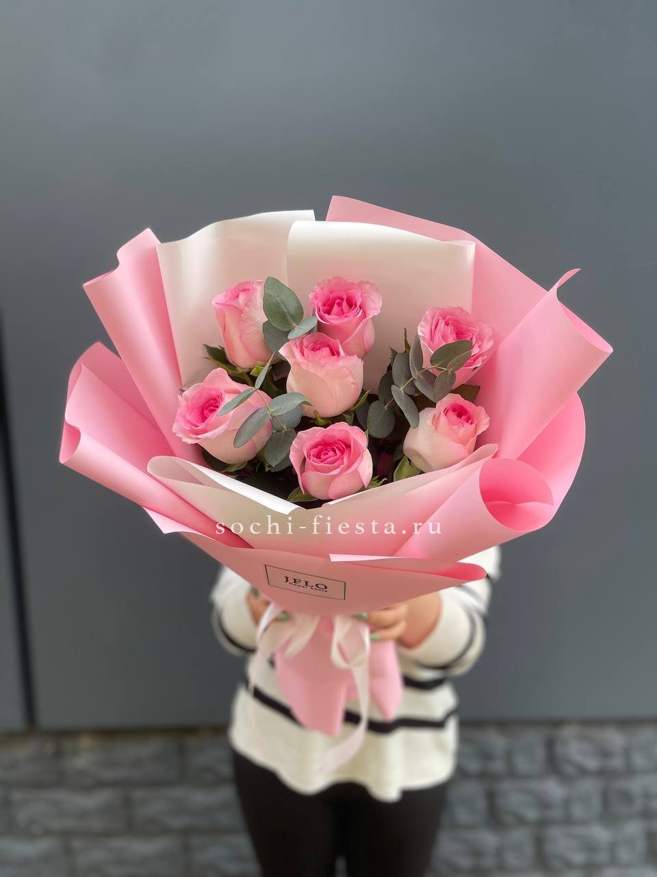Для заказа товара "7 роз с эвкалиптом" с доставкой в Новороссийске нажмите в корзину