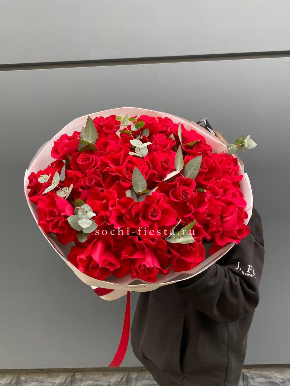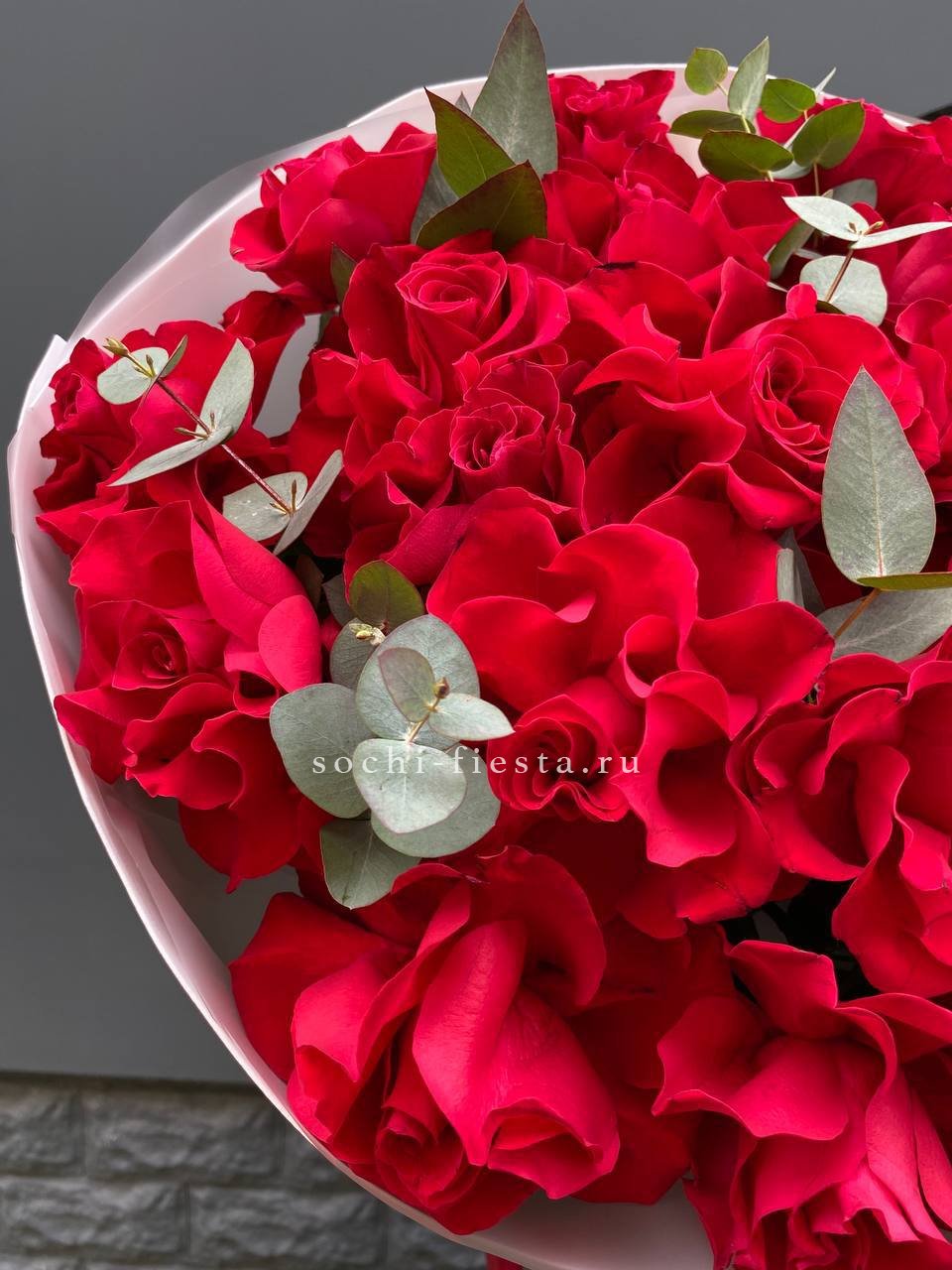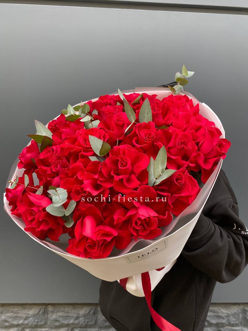французские розы, эвкалипт, лента, авторская упаковка.