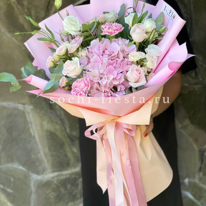 Самые популярные букеты в Новороссийске — это моно-букеты из 25 и 51 розы, шляпные коробки с гипсофилой, композиции с пионами в сезон, свадебные букеты под эскиз, авторские миксы с эвкалиптом и лавандой.