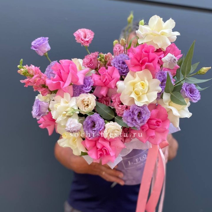 Самые популярные букеты в Новороссийске — это моно-букеты из 25 и 51 розы, шляпные коробки с гипсофилой, композиции с пионами в сезон, свадебные букеты под эскиз, авторские миксы с эвкалиптом и лавандой.