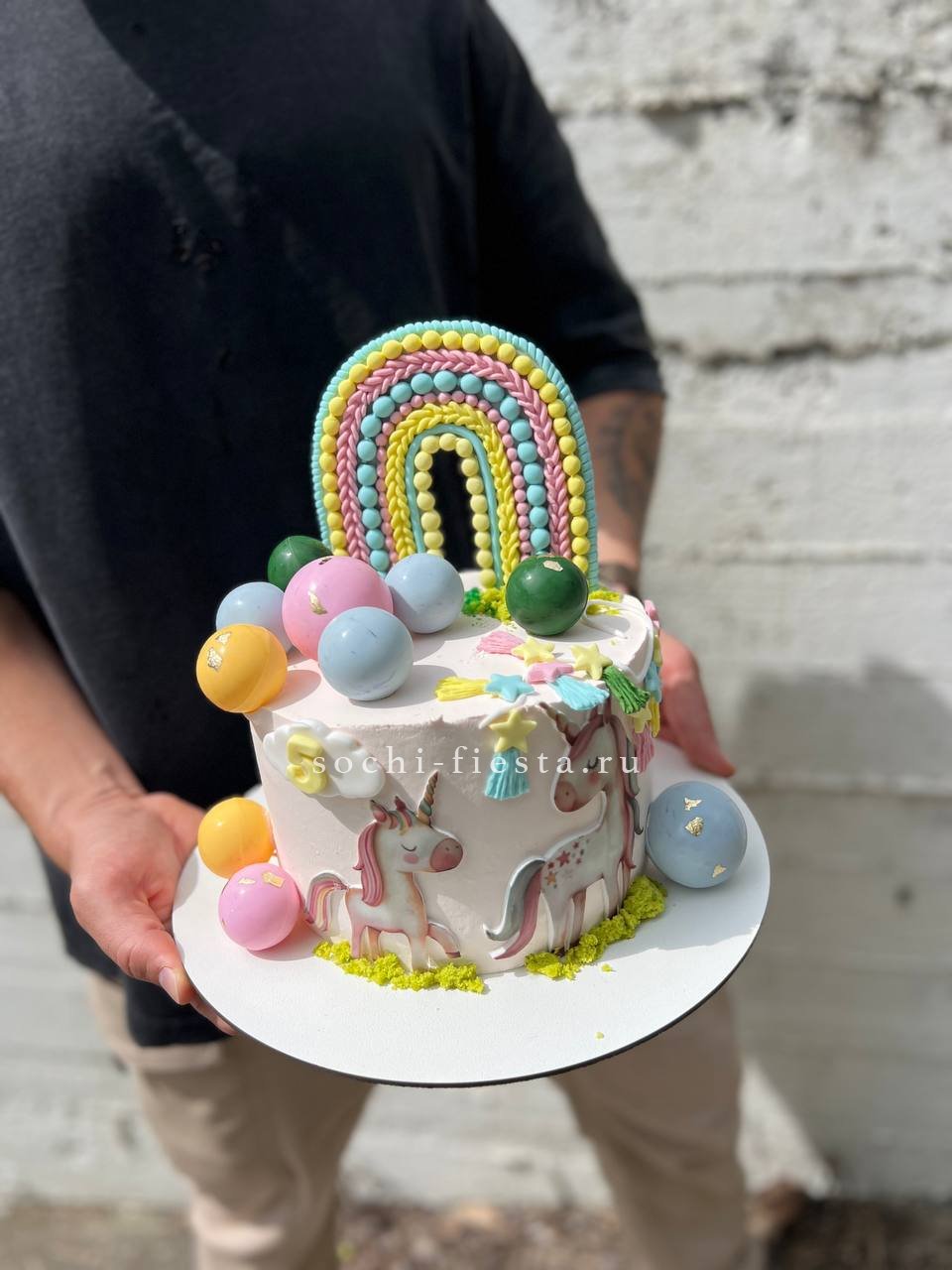 Дизайнерская работа весом полтора килограмма с возможностью выбрать начинку по вкусу в день создания.